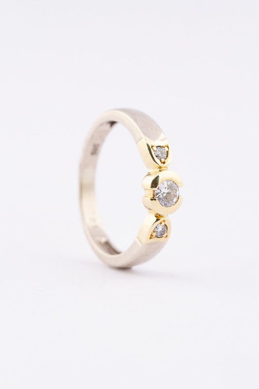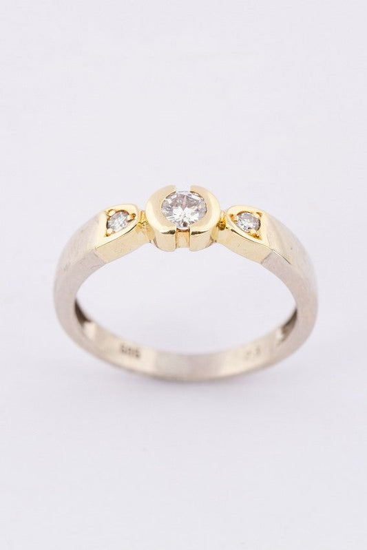 14-karat white/yellow gold ring with three brilliant-cut diamonds. Total weight approx. 0.23 ct.