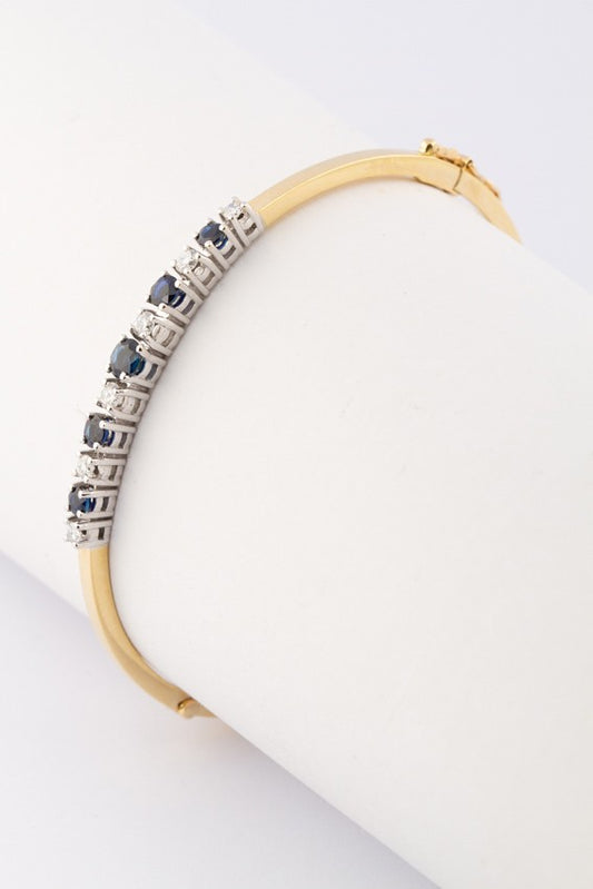 18-karat white/yellow gold bangle with 5 sapphires and 6 brilliant-cut diamonds. Total weight approx. 0.3 ct.