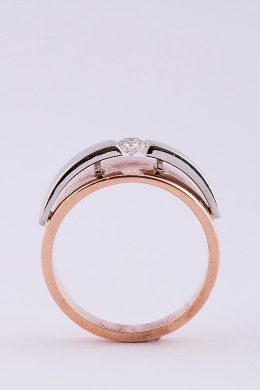 14 kt white/rose gold ring with a brilliant of approx. 0.12 ct.