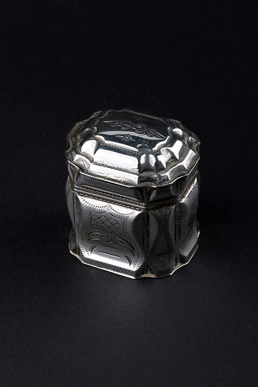 Old silver so-called lodderein box. Master stamp: JH v/d Meulen, Joure (1958-1984). Date letter: 1979.