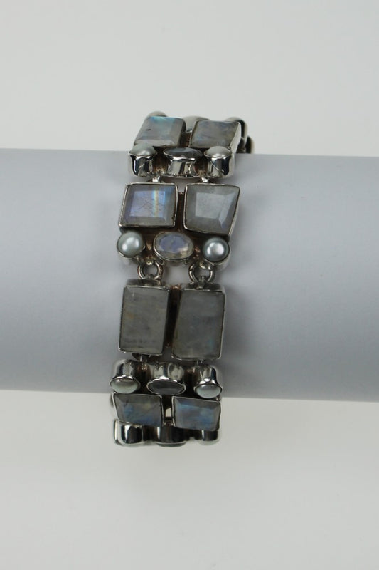 Silver link bracelet with moonstones