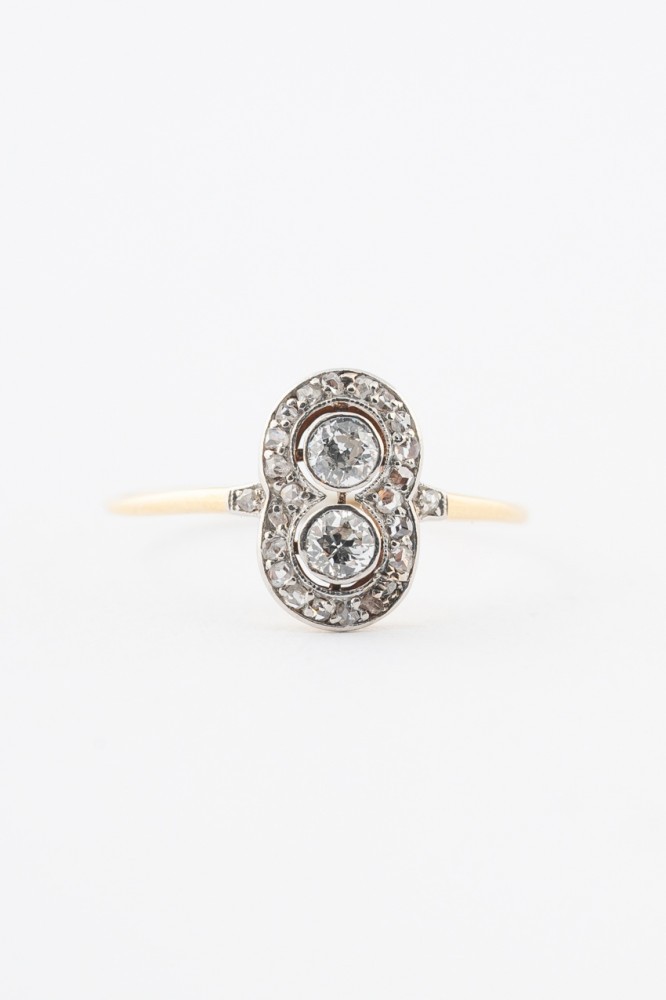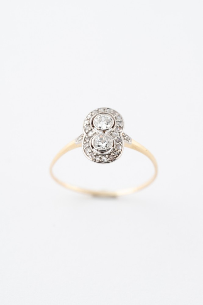 Gouden Art Deco ring met 2 briljanten en 24 diamanten