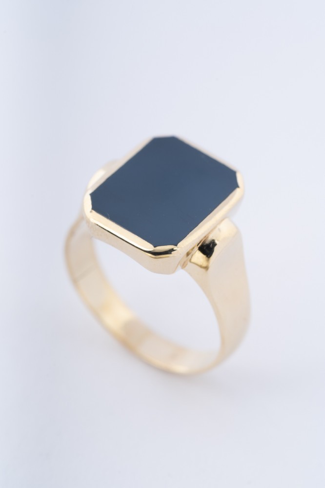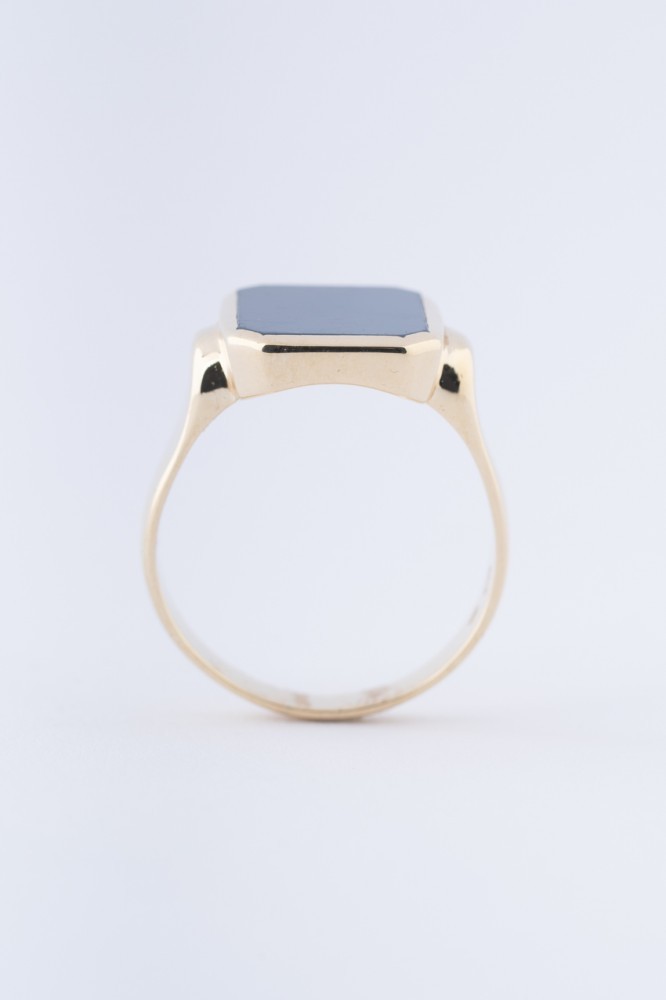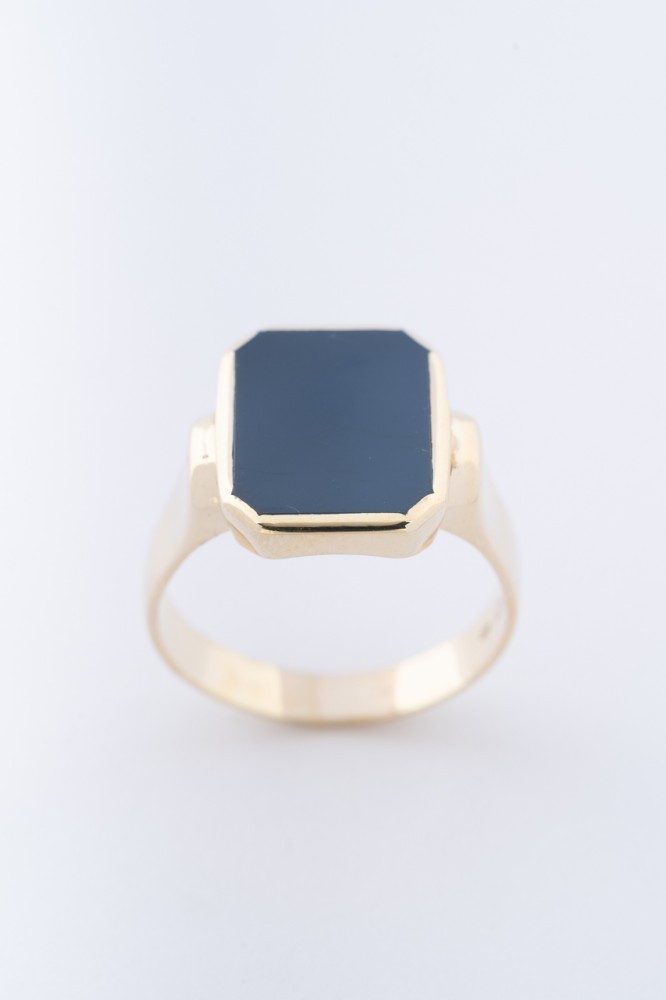 14 krt. gouden heren ring met blauw lagen steen.