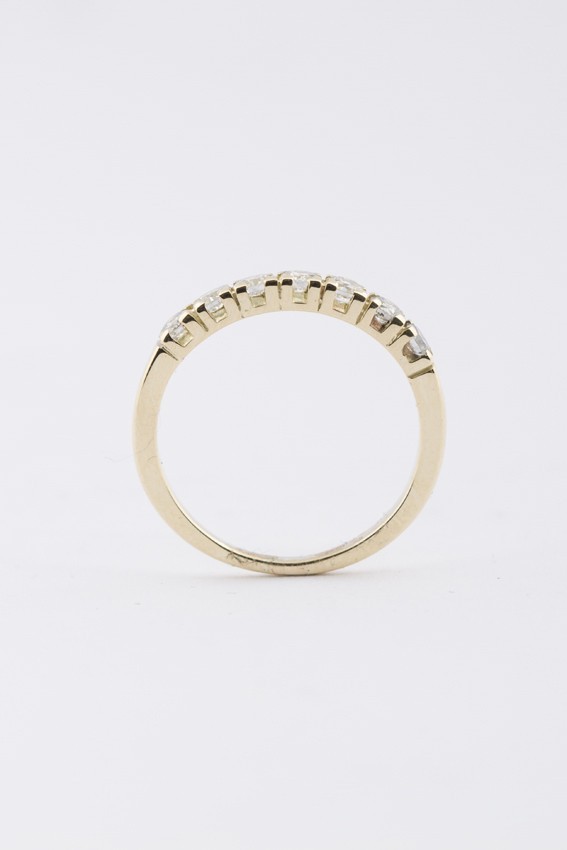 14 krt. gouden rij ring met 7 briljanten. Totaal ca. 0.35 ct.