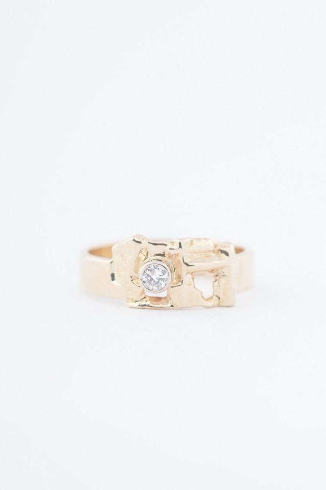 Gouden ring met een briljant met Meesterteken P. vd Hout
