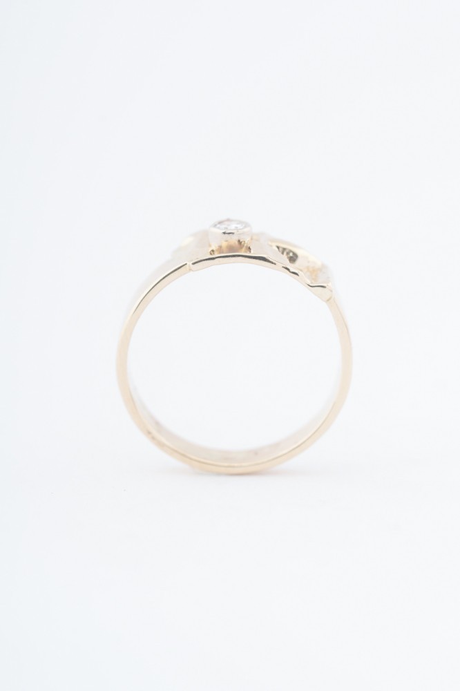 14 krt. gouden ring met een briljant van ca. 0.05 ct. Meesterteken: P. vd Hout.