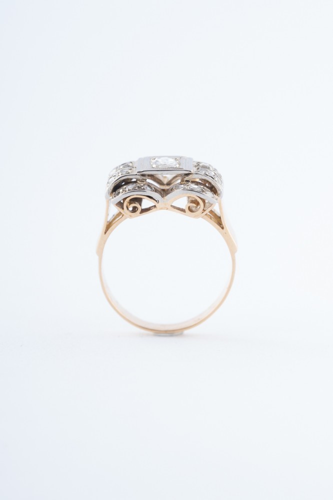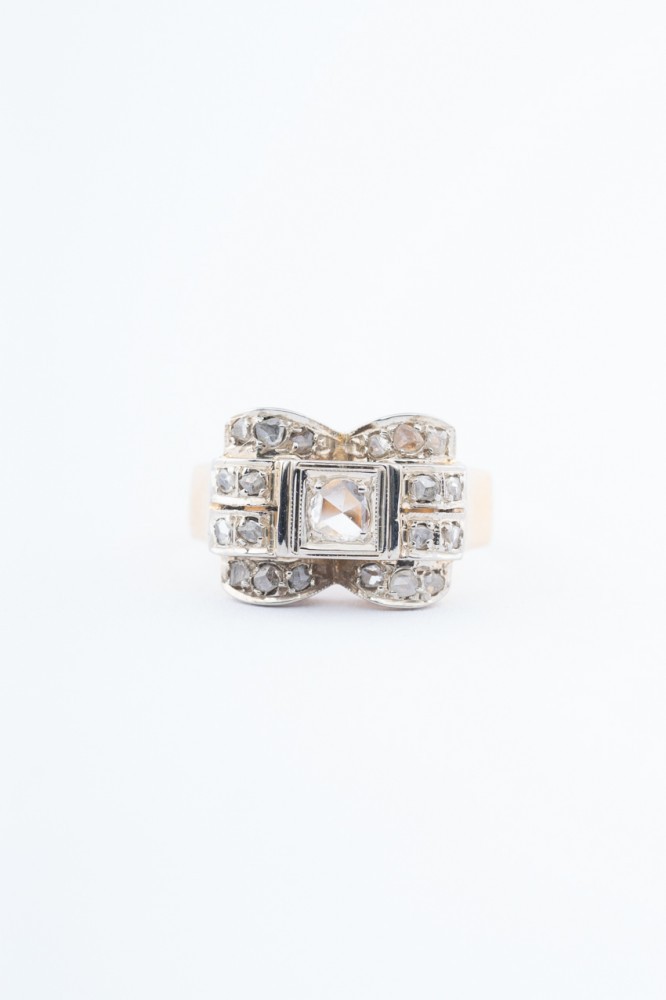 Oude 18 krt. gouden ring met roos geslepen diamanten (40-er jaren).