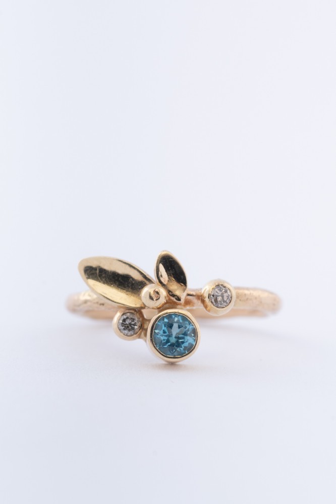 Gouden ring met topaas en 2 briljanten