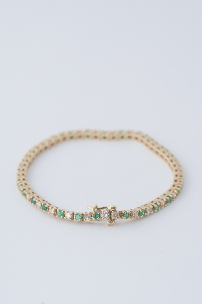 14 krt. gouden tennisarmband met 27 smaragden en 28 briljanten (tot. c.a. 1.12 ct.)