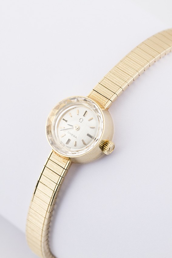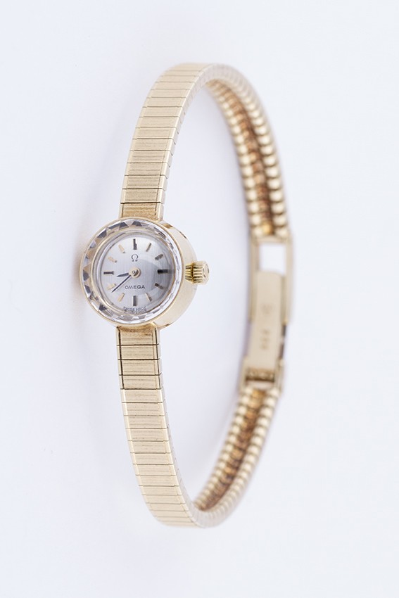 14 krt. gouden Omega horloge aan 14 krt. gouden band.