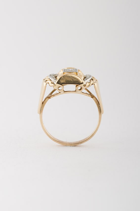 Oude 18 gouden Démodé (Retro) ring met een briljant en 10 diamanten (roos) ca. 1940. Frankrijk.