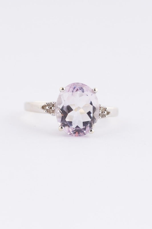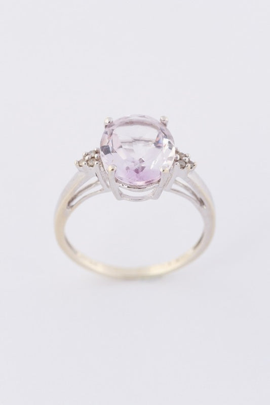 9 krt. ring met amethist en 6 diamanten (Bwg)