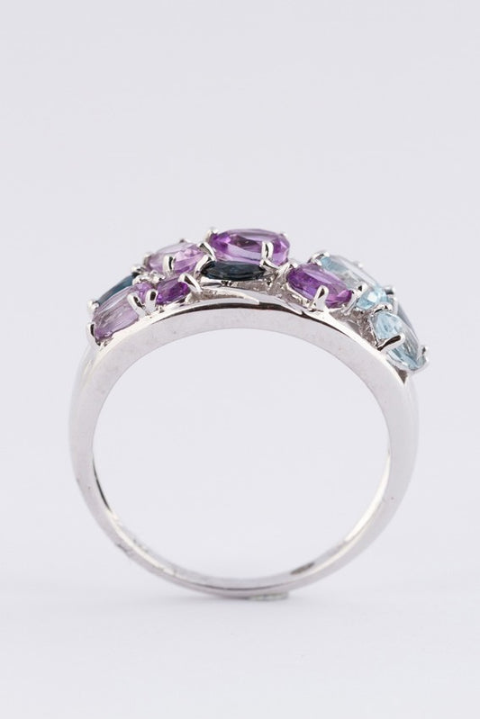 9 krt. ring met amethist, topaas en saffier (Bwg)