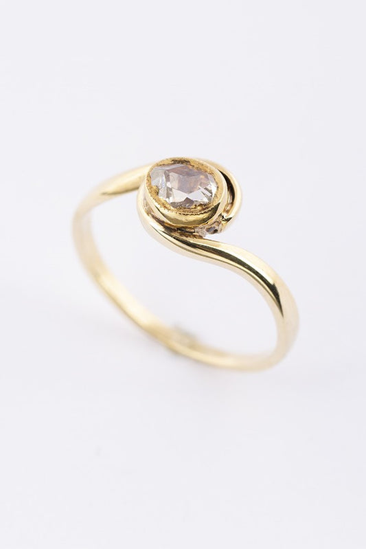 9 krt. slag ring met een roos geslepen diamant in zilver gezet. (Beneden wettelijk gehalte).