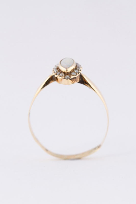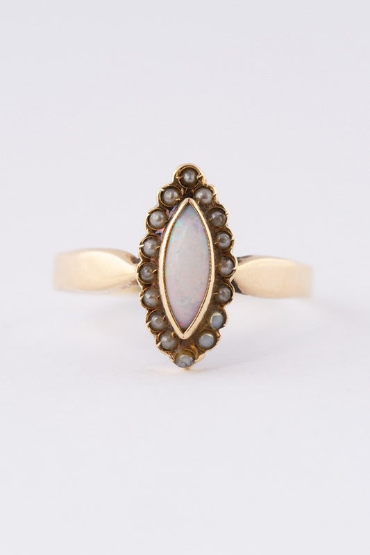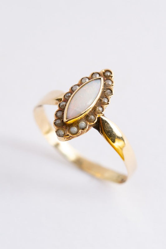 Antiek gouden markies ring met opaal en parels