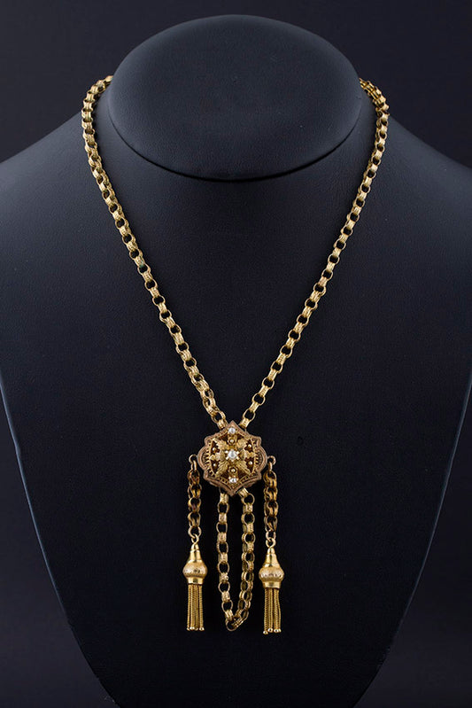 Antiek 14 krt. gouden schuifjes collier met parels.