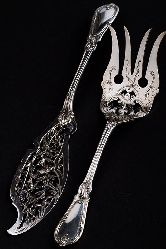 Antiek Frans zilveren vis-dien couvert. Meesterteken: Maillard frères & Vazou. Parijs, 1897-1903.