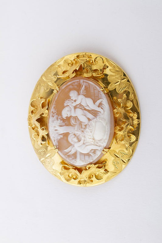 Antieke camee met 3 cupido’s in 14 krt gouden omlijsting( broche/hanger).