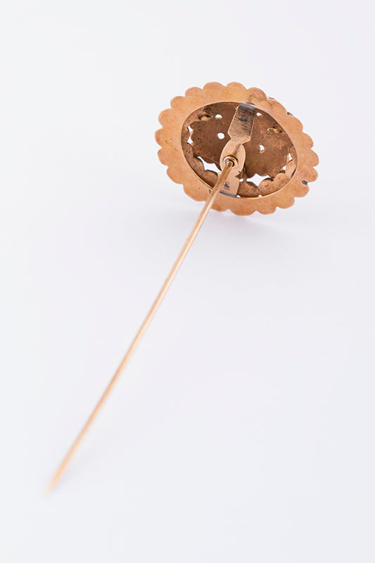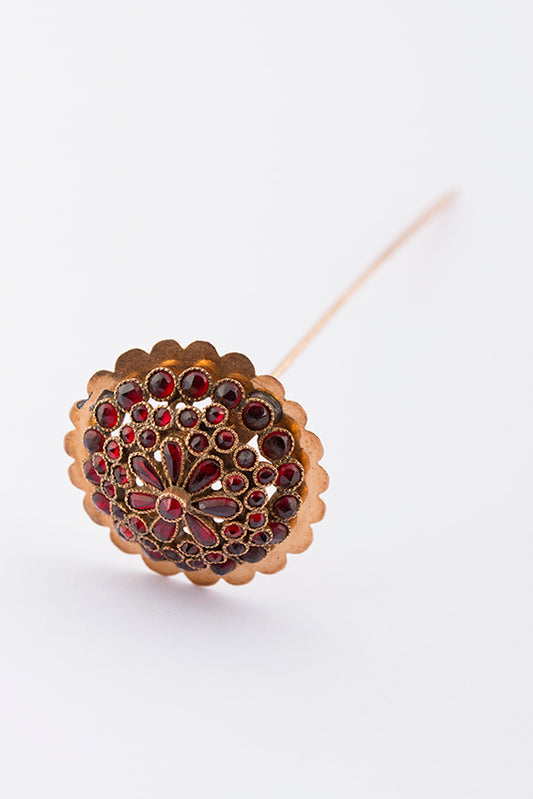 Antieke 14 krt. gouden mutsen speld met granaat.