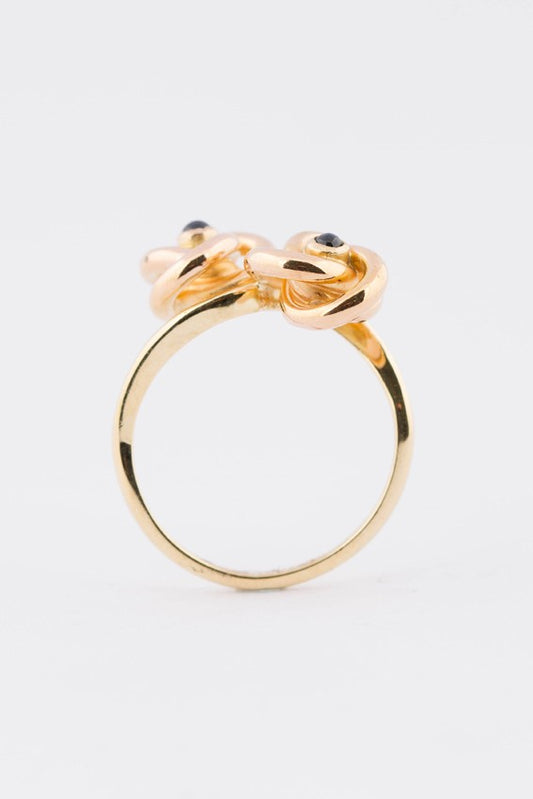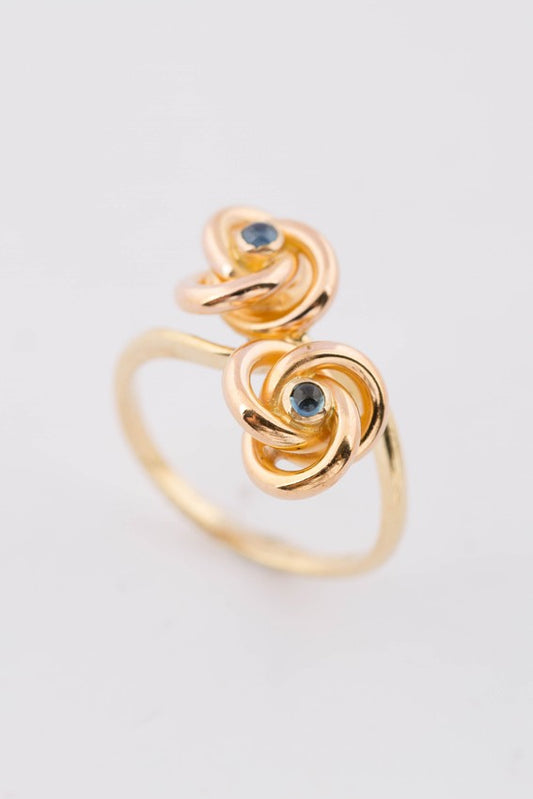 Antieke 14 krt. gouden slagring met 2 saffieren.