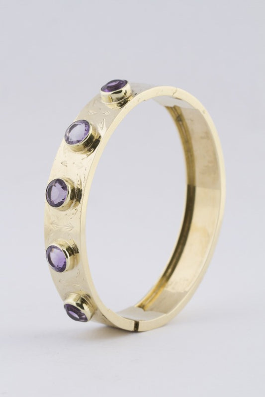Bewerkte gouden slaven band met amethisten
