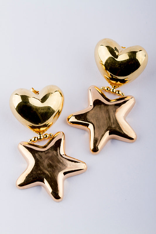 18 krt. gouden bi-color oorhangers met zeester en hart.