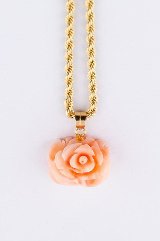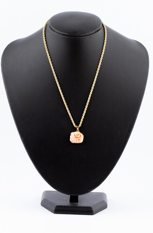 Bloedkoralen hanger gesneden idvv een roos aan gouden collier