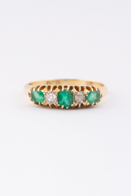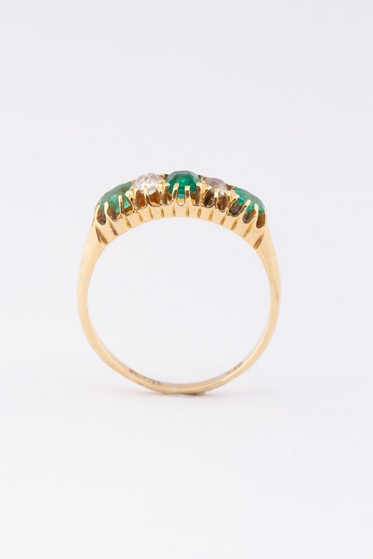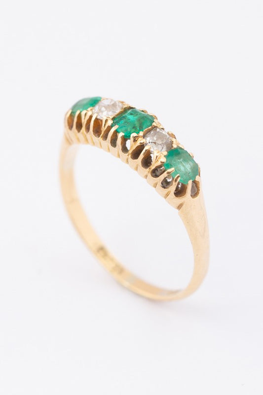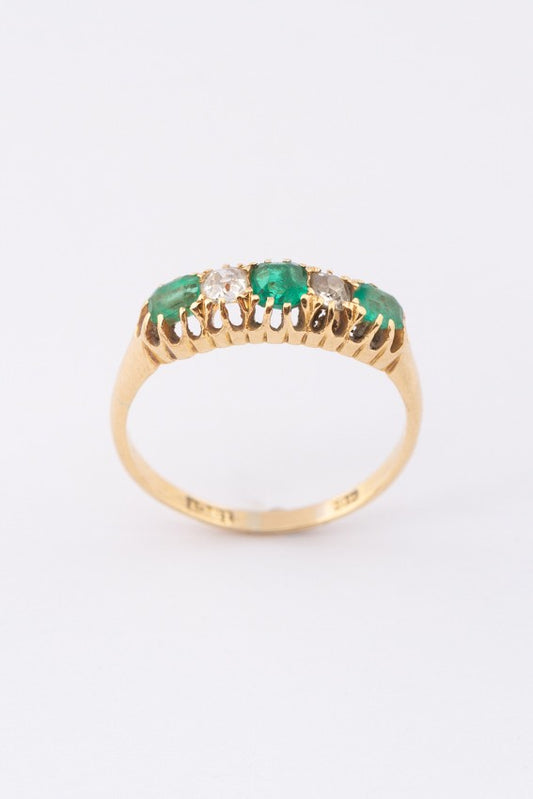 Engelse ring met smaragden en briljanten