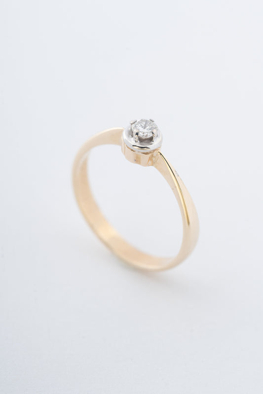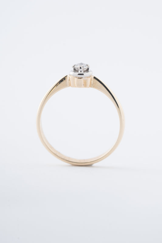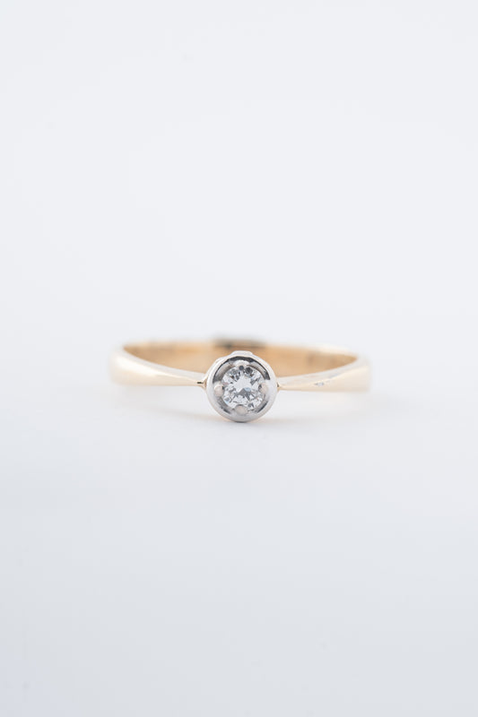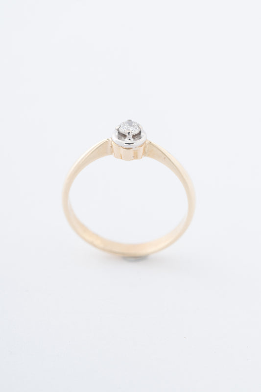 Oude 14 krt. geel gouden solitaire ring met een briljant van 0.10 ct.