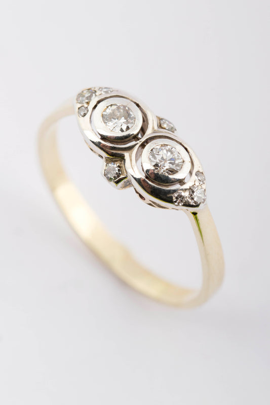 Antiek gouden Art Déco ring met 10 briljanten.