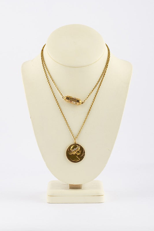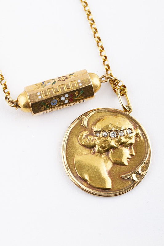 Gouden Art Nouveau hanger met diamanten aan antiek gouden collier