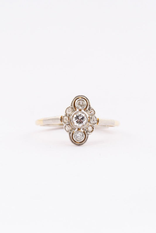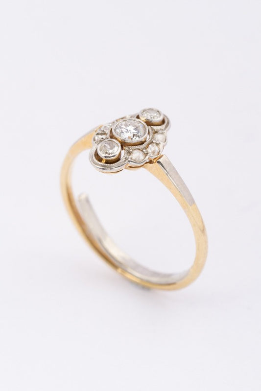 Gouden Art Nouveau ring met briljanten en diamanten