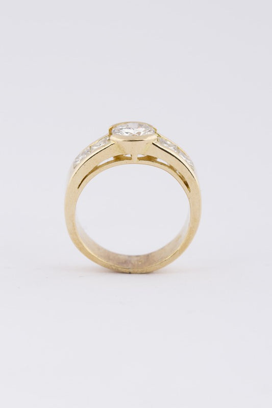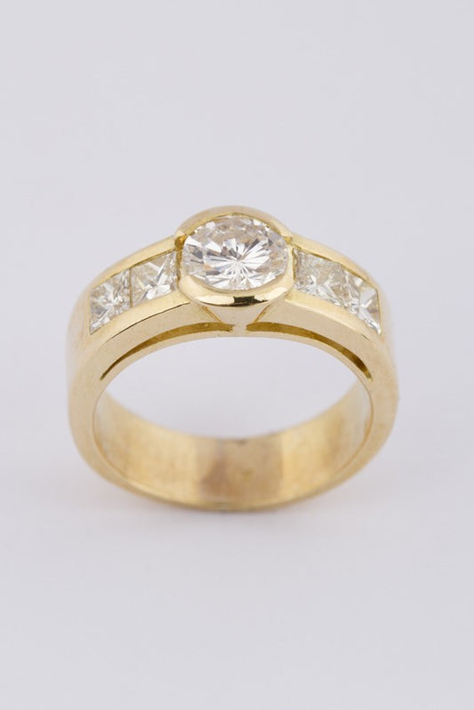 Gouden band ring met briljant en diamanten