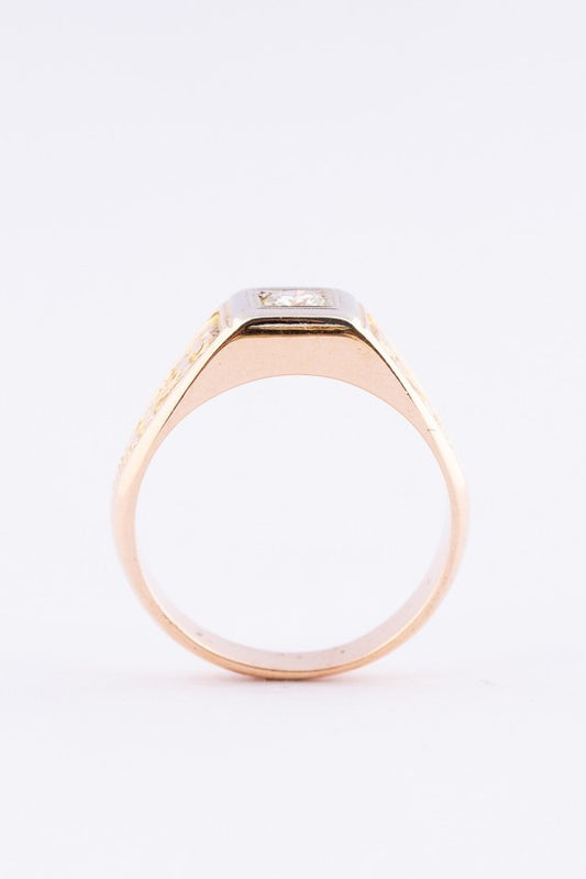 18 krt. gouden bewerkte heren ring met een briljant van ca. 0.25 ct.