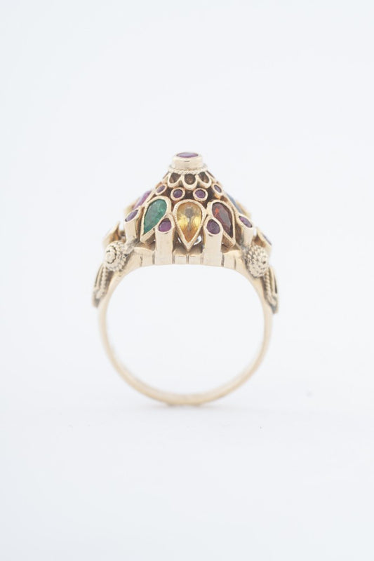 Gouden cocktail ring met diverse edelstenen