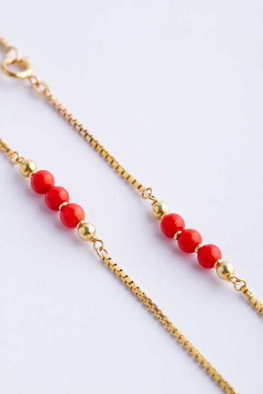 14 krt gouden collier met bloedkoralen tussen schakels.