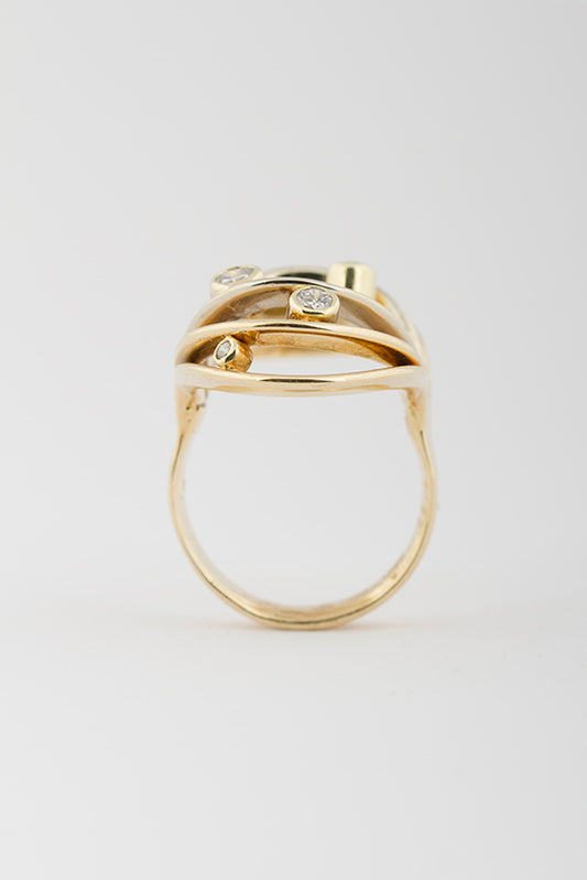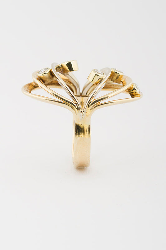 14 krt. gouden fantasie ring met 6 briljanten. Totaal ca. 0.25 ct.