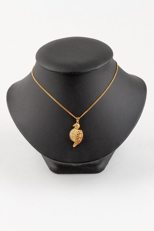 Gouden hanger in de vorm van een vogel bezet net briljanten en robijnen aan gouden collier