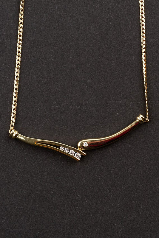 Gouden hanger met 5 briljanten in het middenstuk aan gouden collier