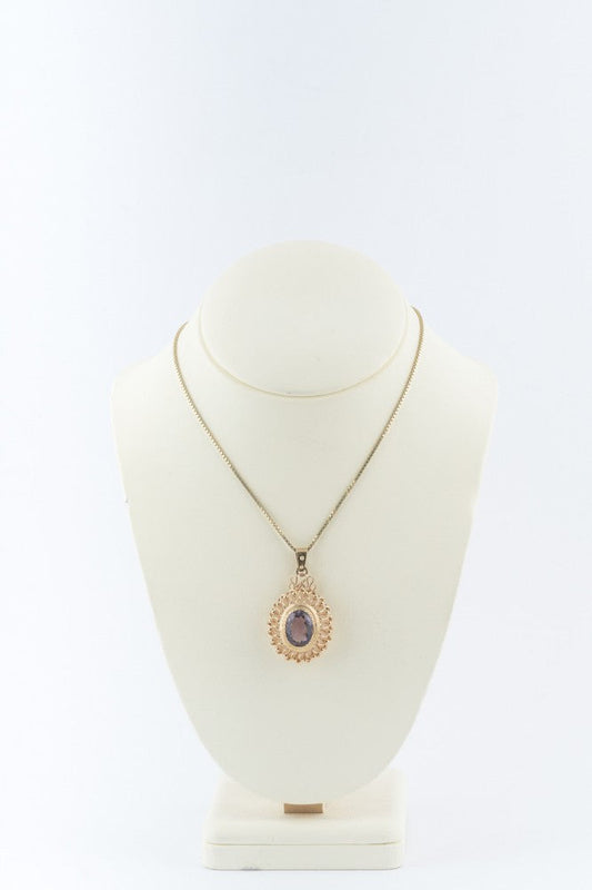 14 krt. gouden hanger met amethist aan 14 krt. gouden collier.