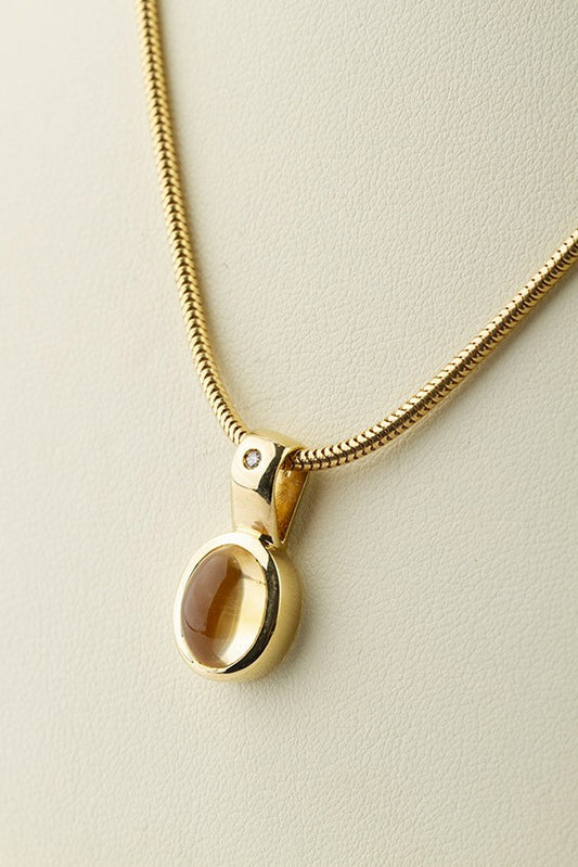 18 krt gouden hanger met citrien en een briljant aan 14 krt. gouden slangen collier.