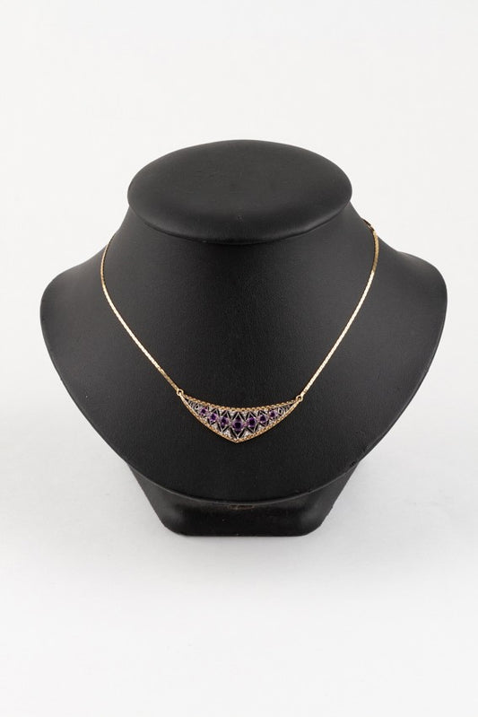 Gouden hanger met in het middenstuk briljanten en amethisten