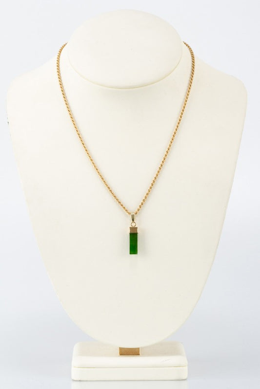 14 krt. gouden hanger met jade aan 14 krt. gouden koord collier.