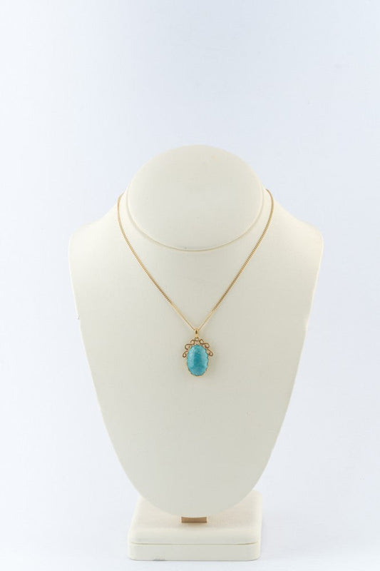Gouden hanger met turkoois aan gouden gourmet collier