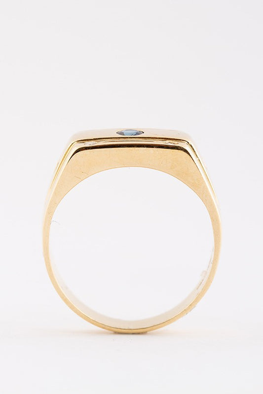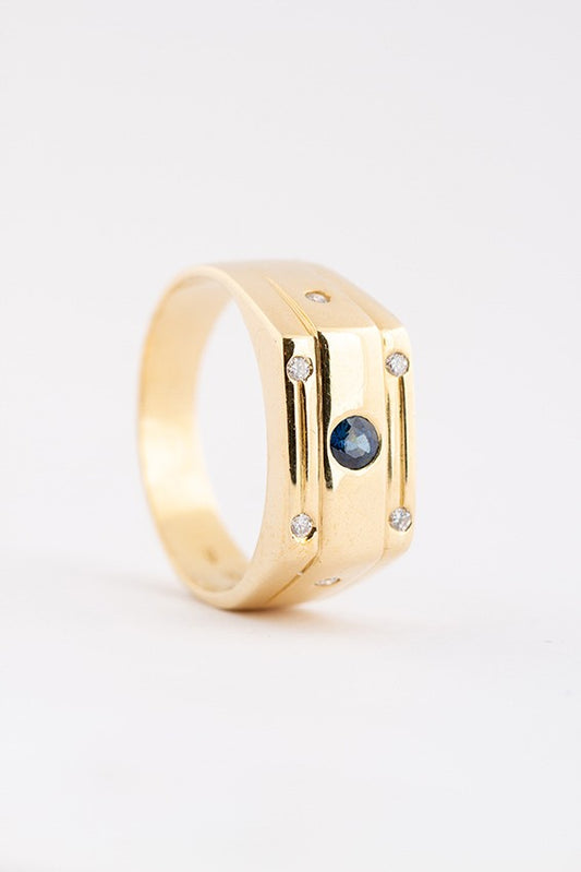 18 krt. gouden heren ring met 6 briljanten en een saffier.