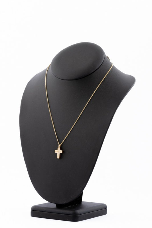 Gouden kruis met briljanten aan gourmet collier
