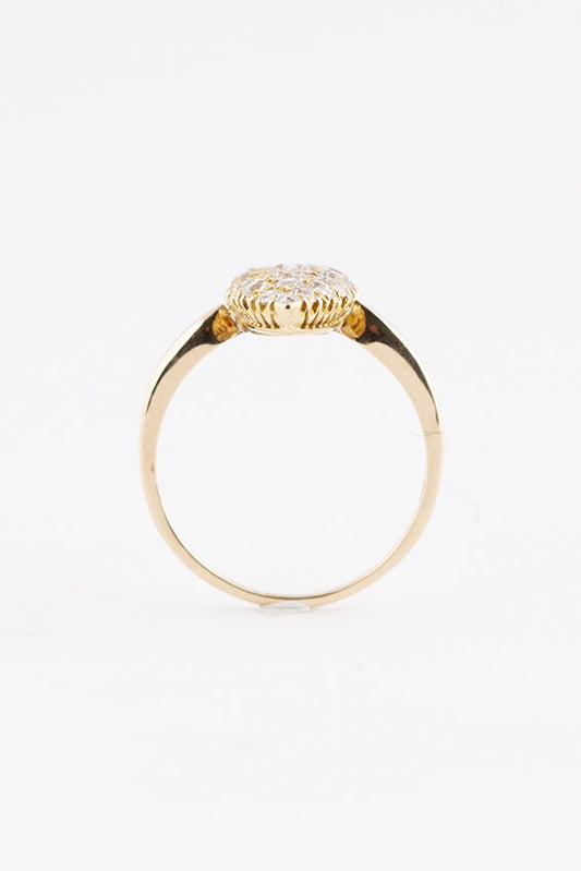 Gouden markies ring met oud geslepen briljanten en diamanten
