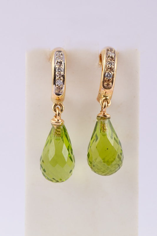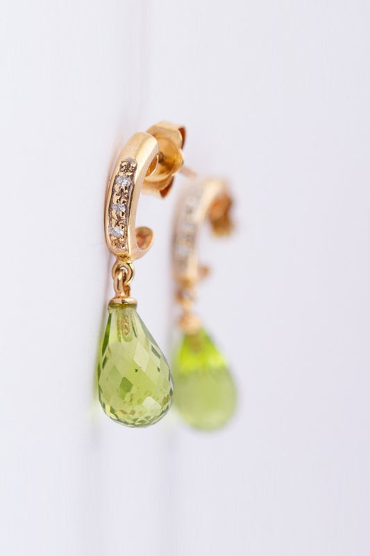Gouden oorhangers met briolet geslepen peridoot en briljanten