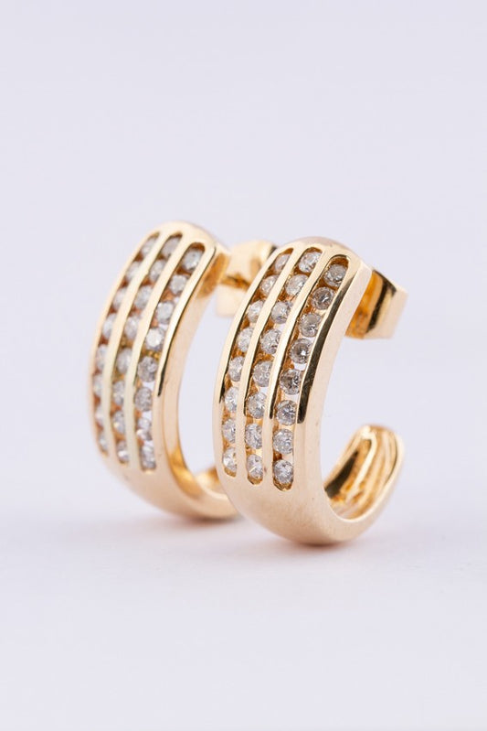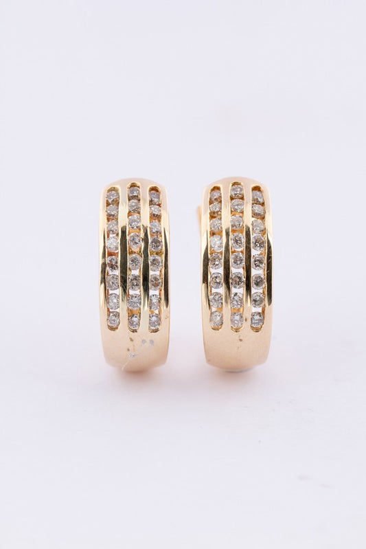 14 krt. gouden oorknoppen met in elk 24 briljanten. Totaal ca. 0.72 ct. Bijpassende ring aanwezig in onze webshop.