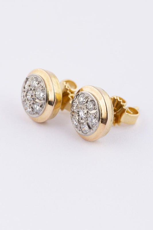18 krt gouden oorknoppen met in elk 7 briljanten. Totaal ca. 0.25 ct.